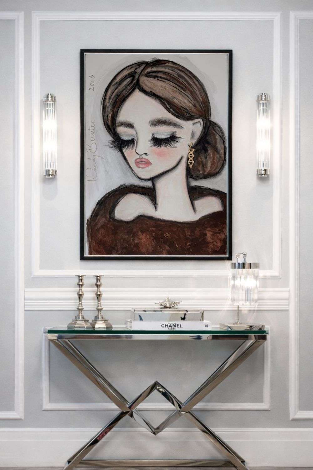 This exclusive Masterpiece by Dutch contemporary artist, Wendy Buiter, is a one-of-a-kind original, featuring a sophisticated woman of haute culture. Hand-crafted using mixed media on premium European, wood-free fine artistry paper, this Masterpiece showcases the artist’s signature style and the bold elegance of modern beauty.